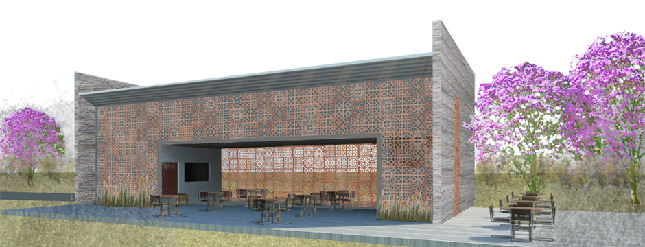 Seguindo este modo de compreender a situação, o desenho da proposta constitui-se de um eixo central que liga a Casa de Ervas as ruínas da Igreja São Geraldo, importante marco histórico para a constituição da Vila Paranoá como cidade Paranoá. Desta linha emergem inúmeros mirantes em decks que apontam para a paisagem circundante ao mesmo tempo que organizam todo o programa de necessidades apontado pelo concurso.